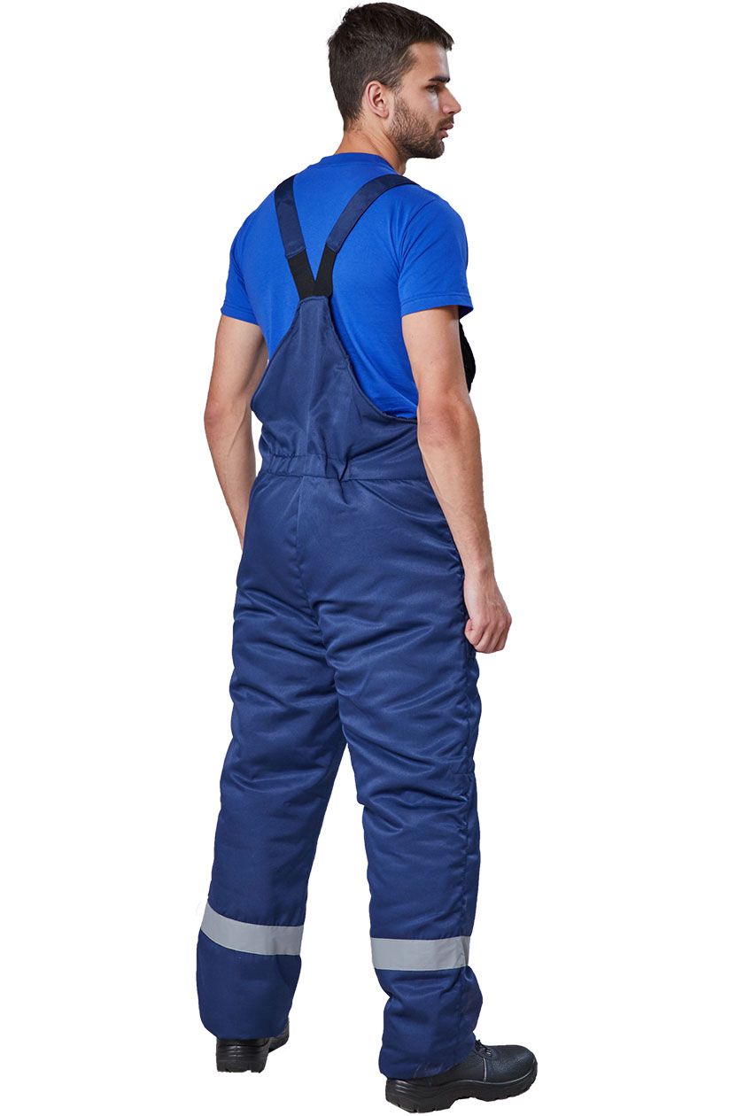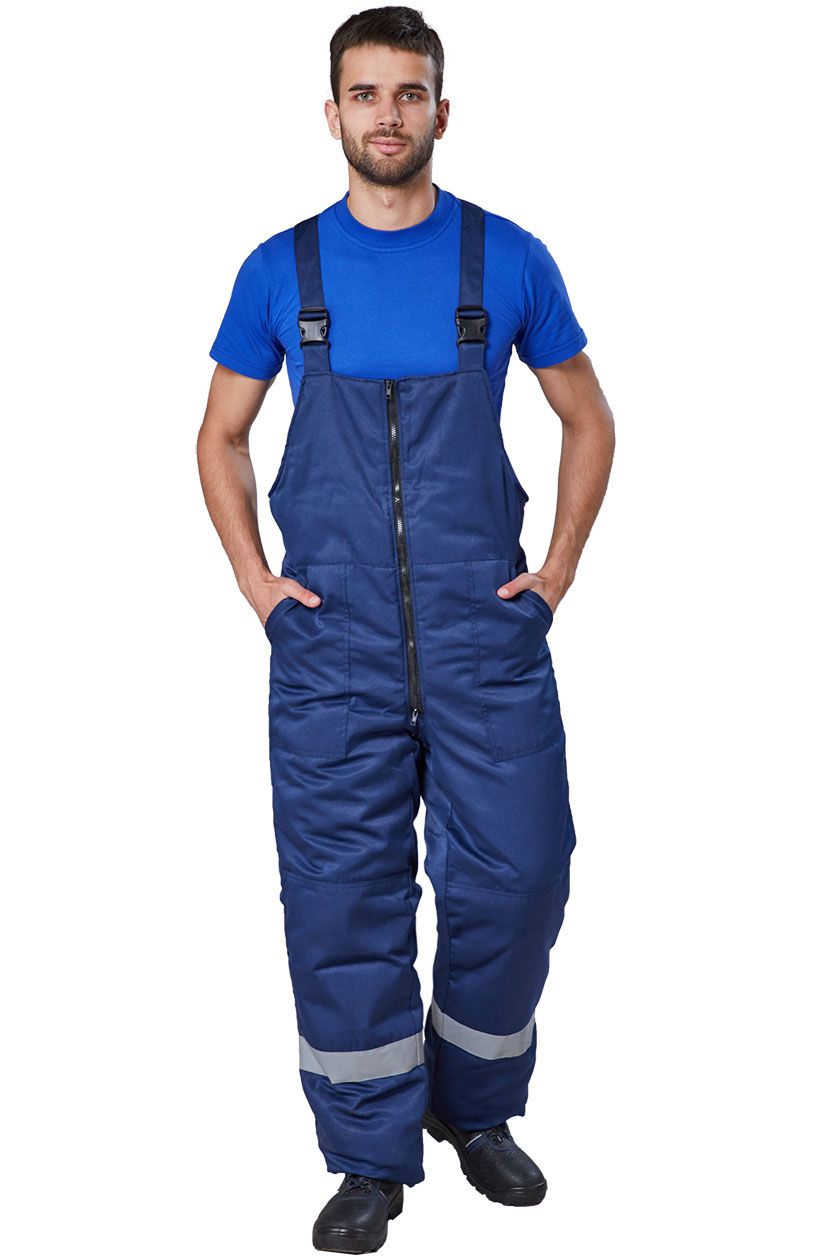 Полукомбинезон утепленный с отрезным нагрудником по линии талии спереди. Застежка на молнию. Два накладных кармана с наклонным входом.